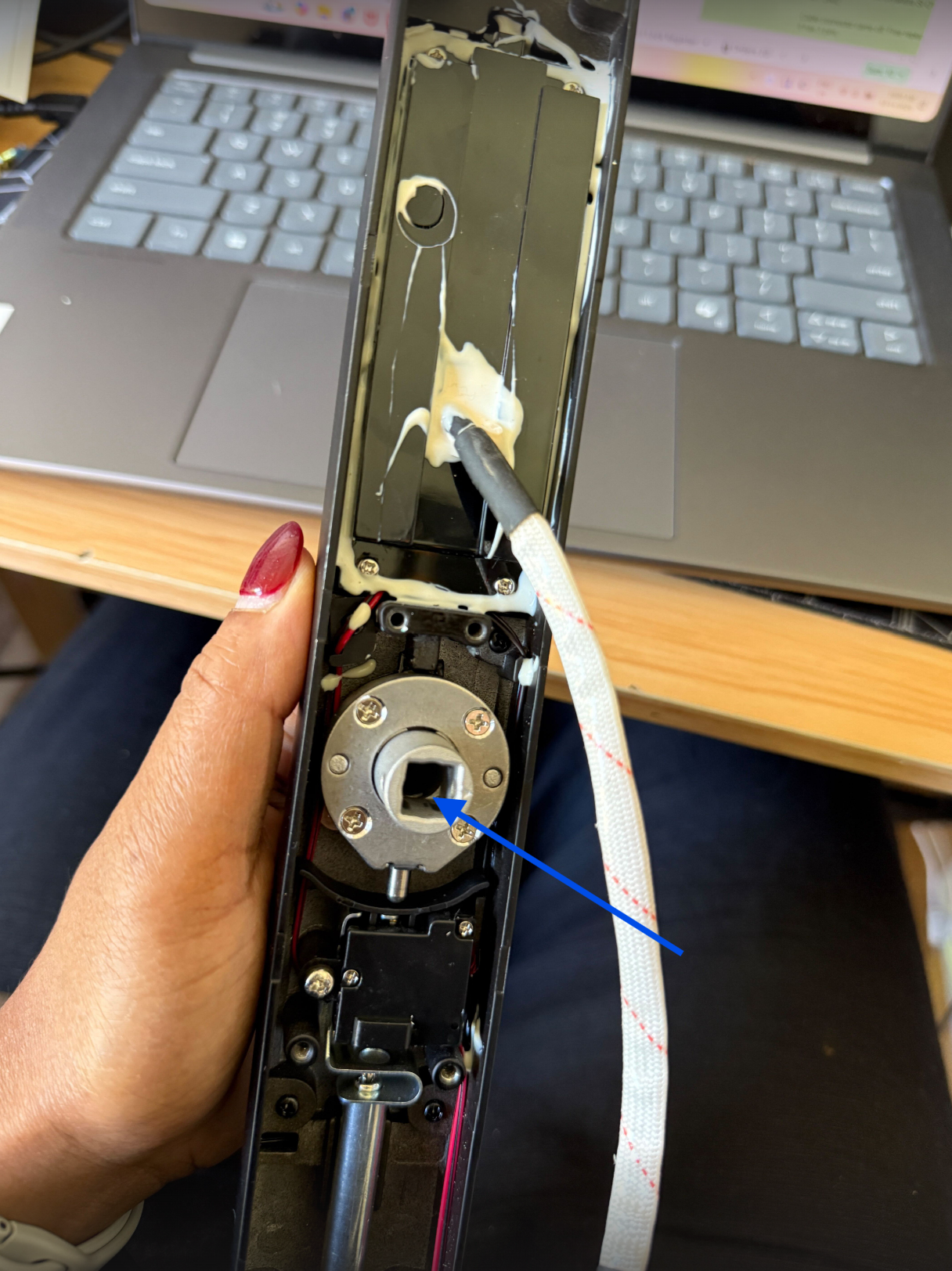 3. Use an Allan key to remove the screw which is inside the spindle hole.
