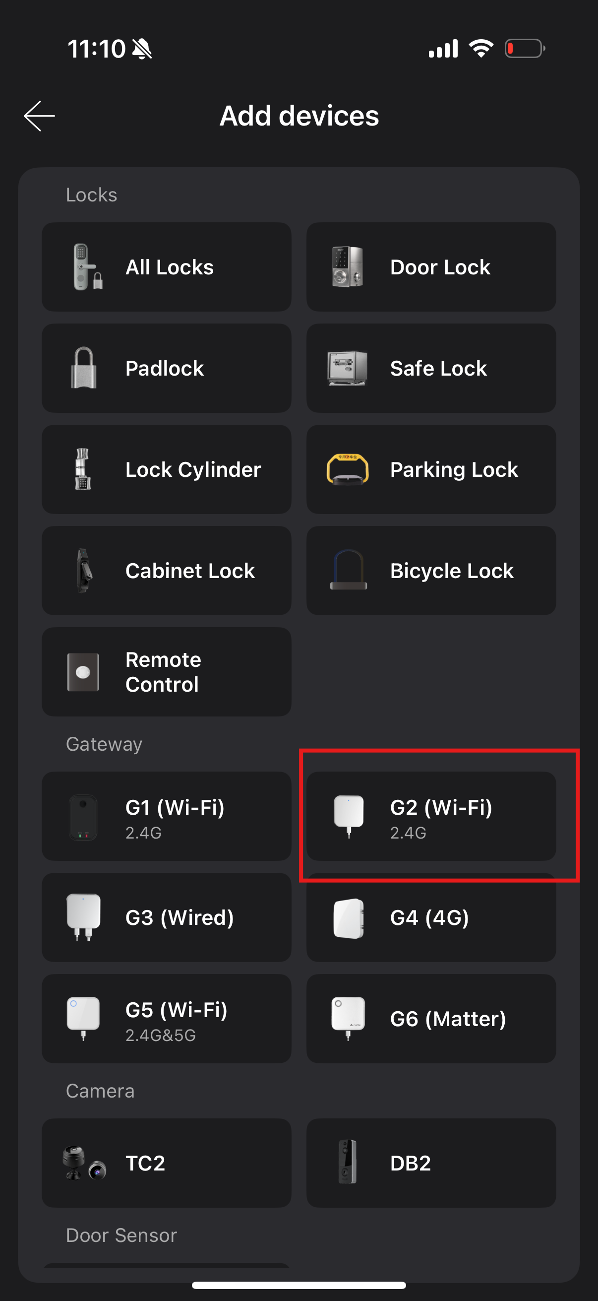 - Select ‘G2 (Wi-Fi) under ‘Gateway’.