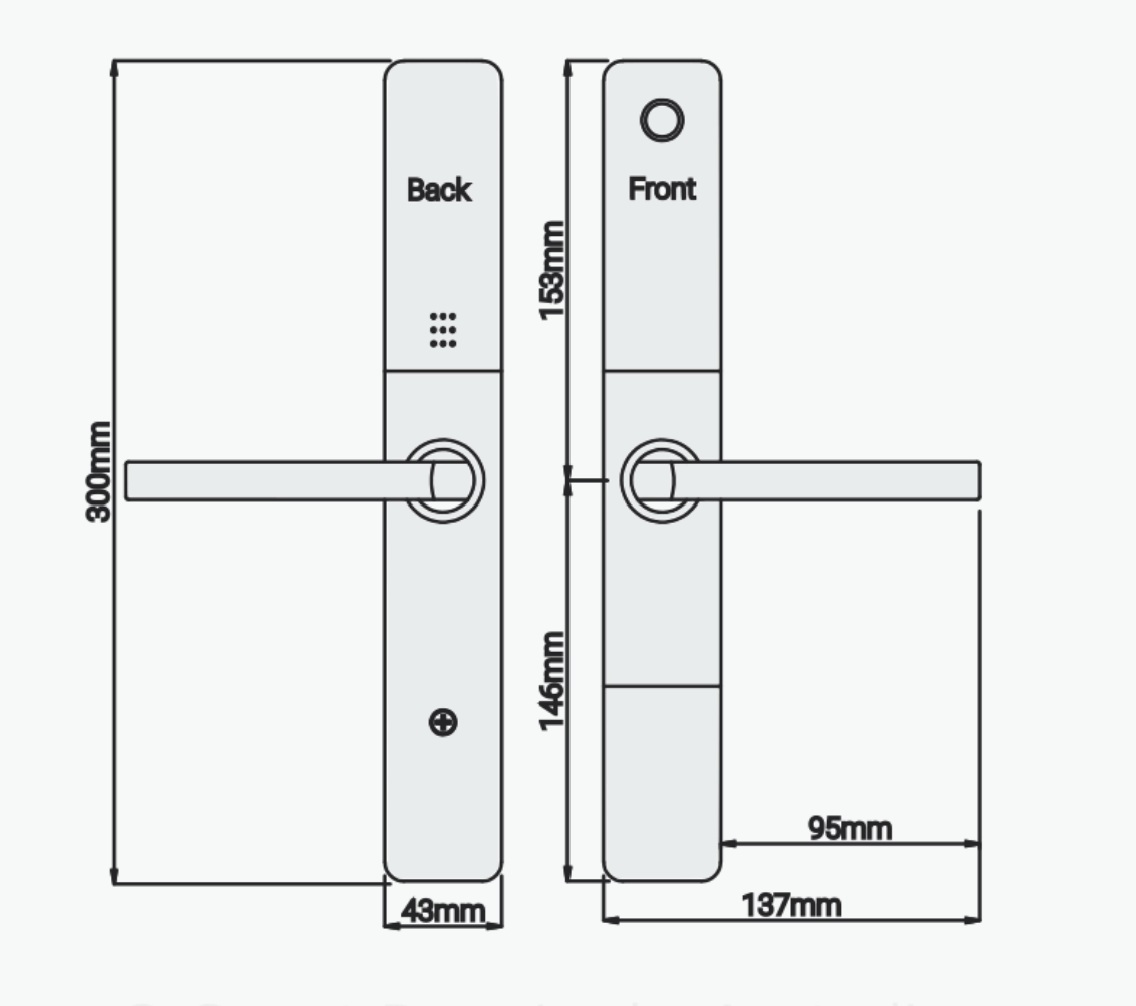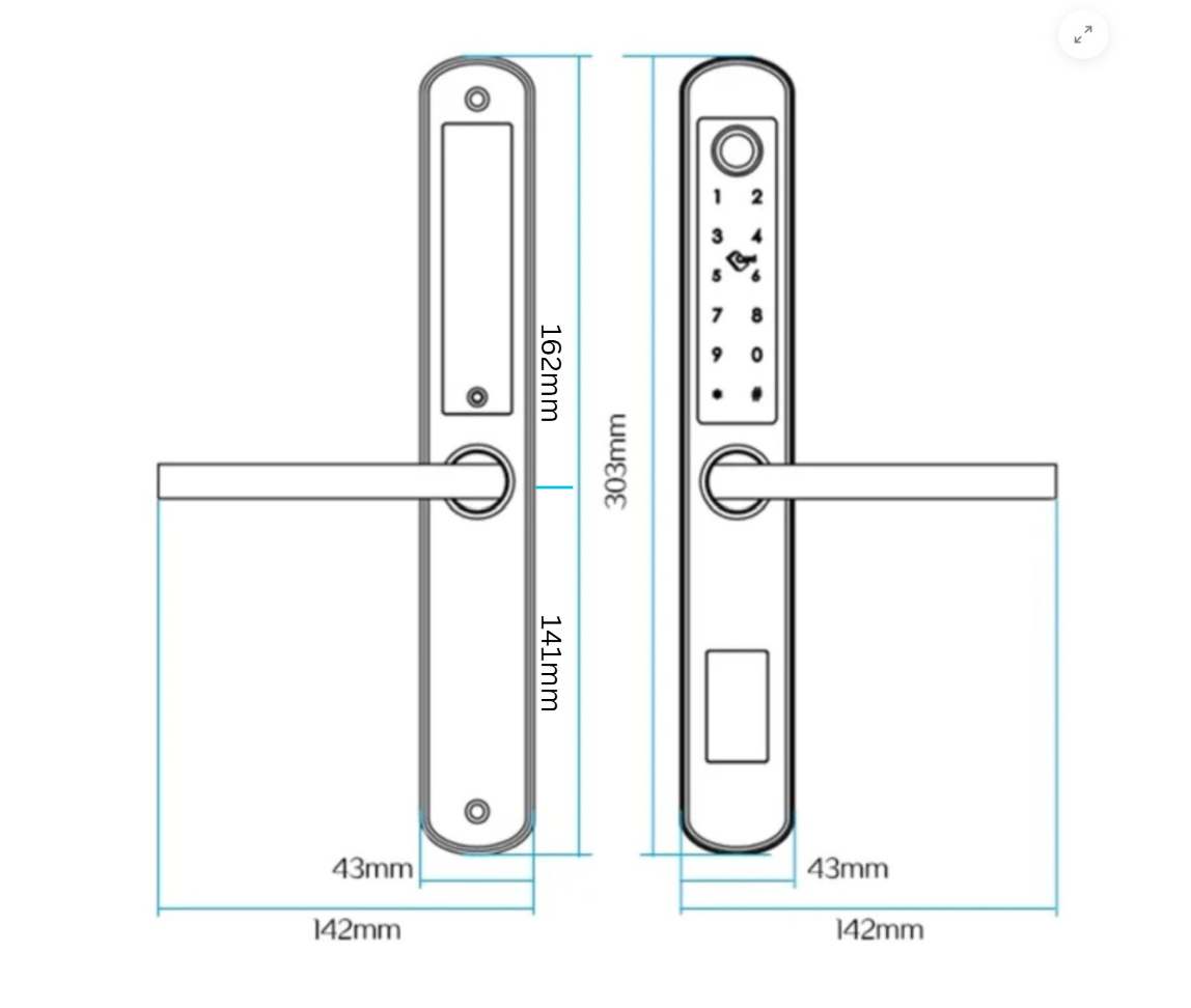 - Measurements of the SmartDL 5-in-1 Slim (43 mm wide) lock