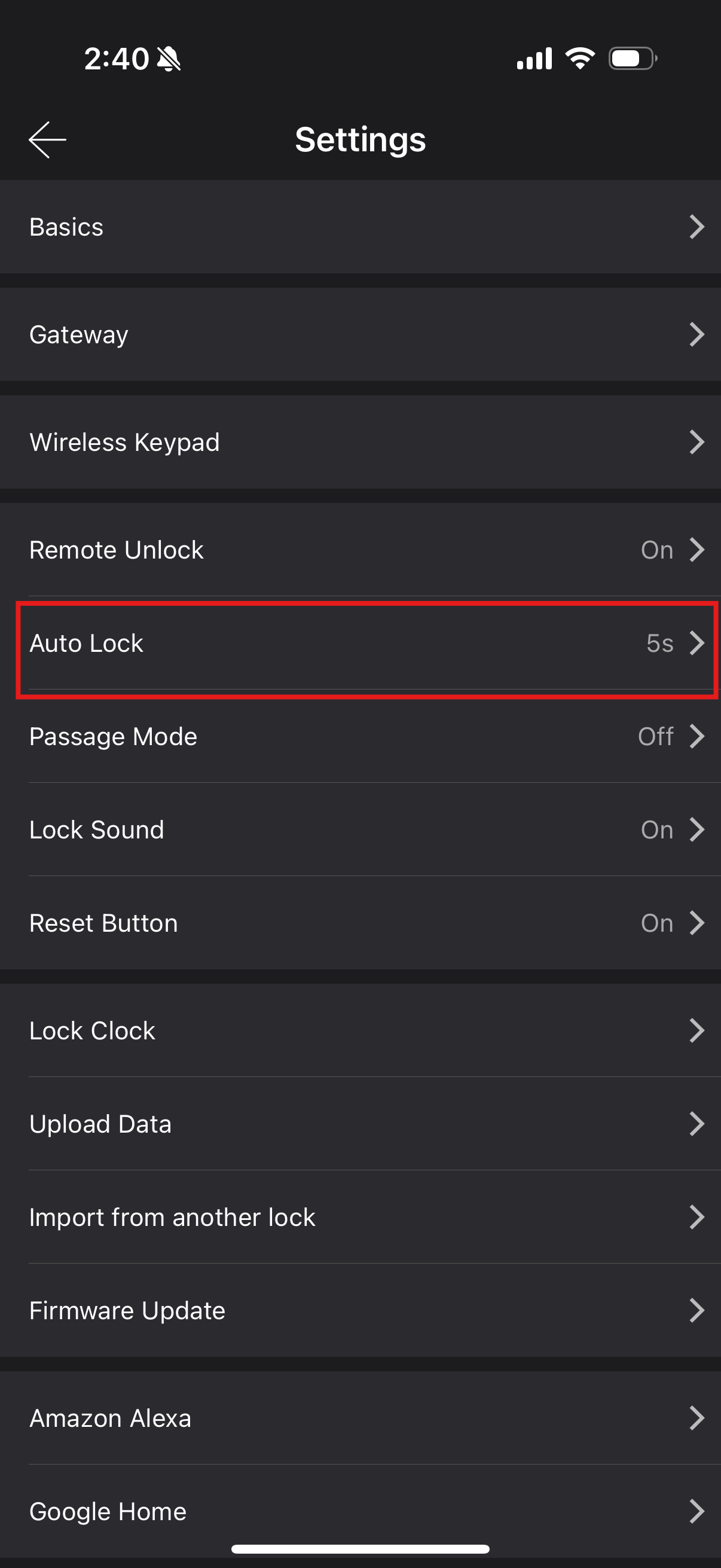 Auto Lock is turned off