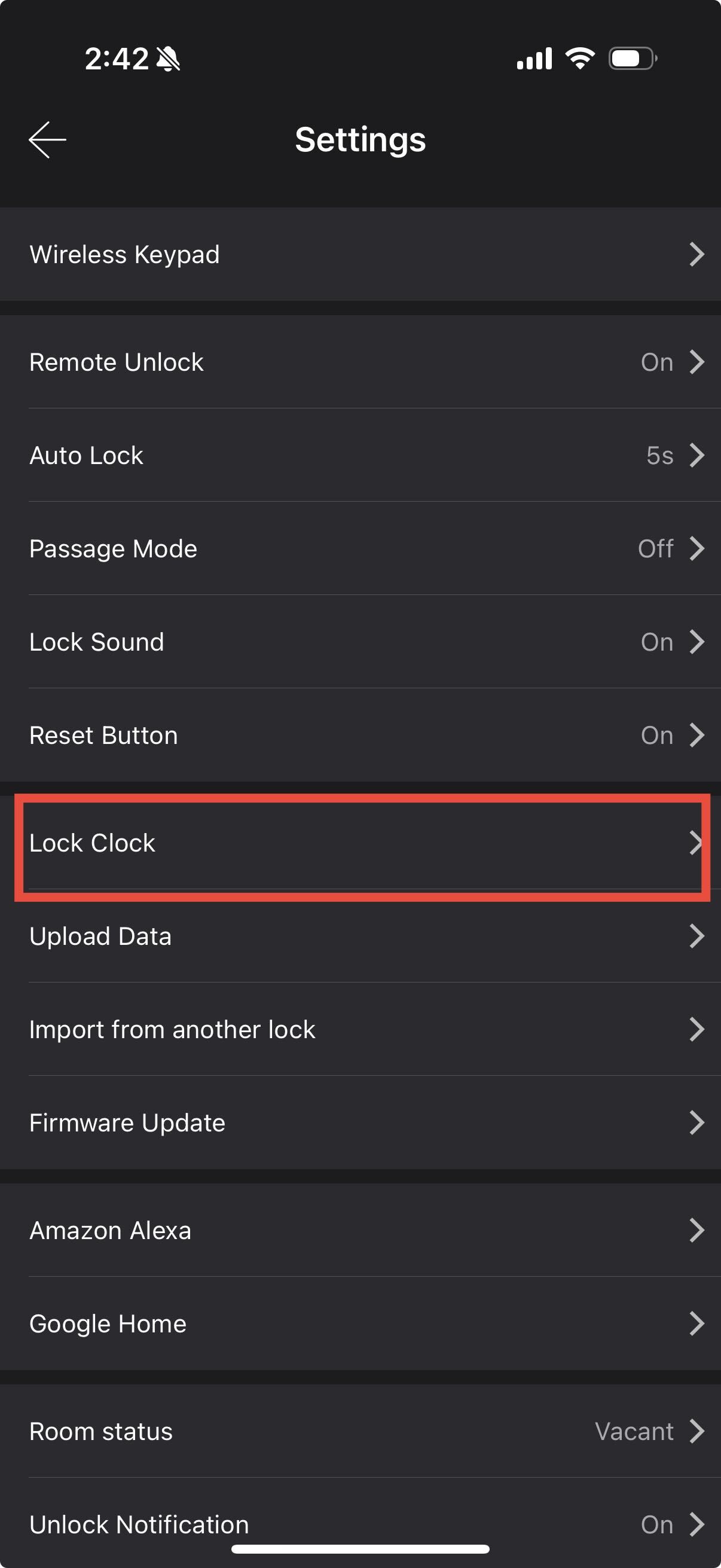 Open the lock settings in the app